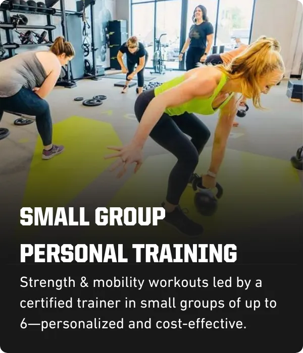 Unlike crowded classes or impersonal gyms, Alloy offers expert-led small group personal training in a welcoming, age-appropriate environment. You’ll get individualized attention, accountability, and real results—without feeling like you’re on your own.